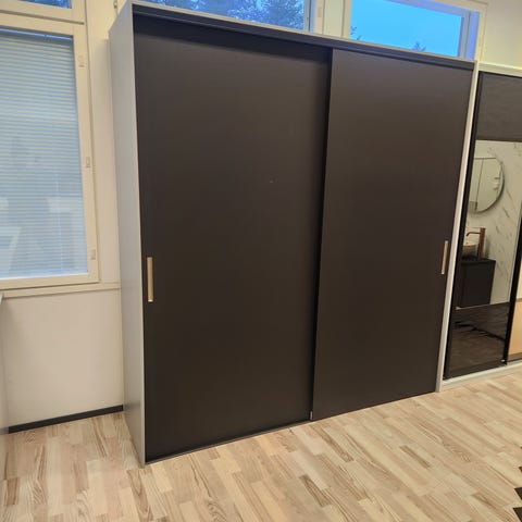 Uuden veroinen, käytetty Nova liukuovikaappi. Valkoinen runko, liukuovet ja kansi kaunista, saarnen väristä 3d-laminaattia. Nova kaapit valmistetaan Suomessa.