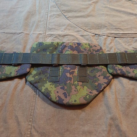 Tähän mahtuu erinomaisesti ainakin Leatherman Charge tai tuo rekvisiittana oleva Marttiini taskuveitsi. (Voin kyllä myydä senkin.)