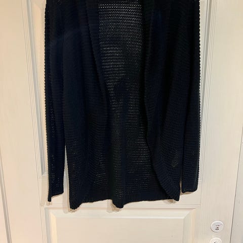 H&M:n musta neuletakki kokoa M. Materiaali 50 % angoraa ja 50 % polyamidia.
