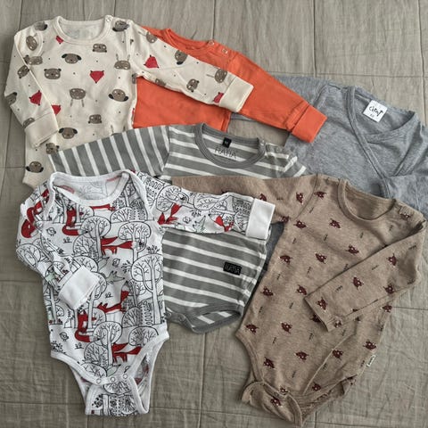 21 kpl pitkähihaisia bodyja. Koko 62cm.