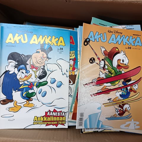 Pahvilaatikollinen erilaisia AkuAnkka-kirjoja. Hyväkuntoisia.