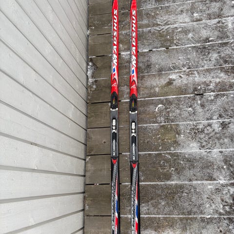 Vähäisellä käytöllä olleet. Monot 45, sauvat 155cm, sukset 210cm.