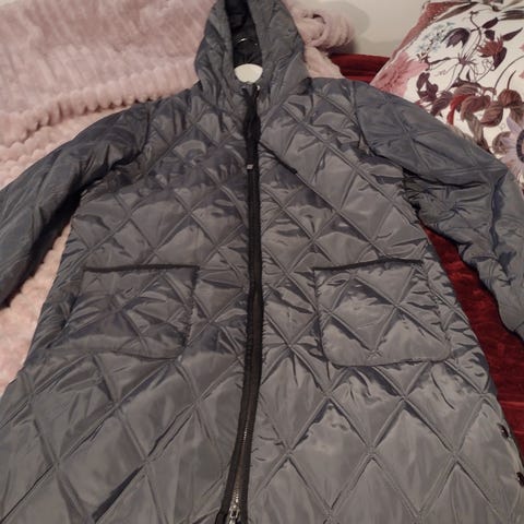 Kevyt, eristetty, luonnonvalkoinen toppatakki hyvässä kunnossa