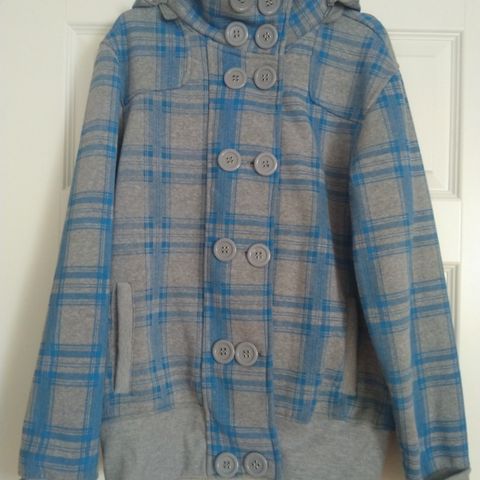 Kaunis kevyt huopakangastakki, jossa irroitettava paksu huivi. Koko XL, menee L ja XL koolle tai pienemmälle jos haluat väljän mallin. Kuvissa koon 36/S koon mannekiinilla jolle reilun kokoinen.