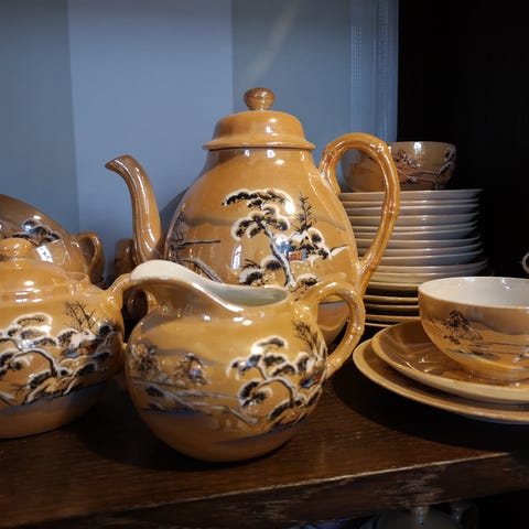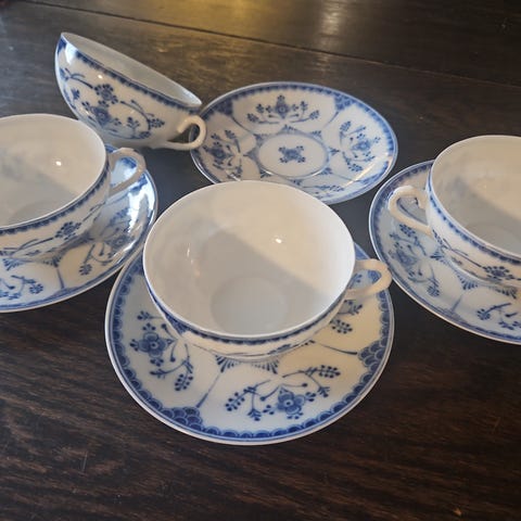 6 kupin teeastiasto teekannulla, isokokoisella sokerikolla ja kermakolla. Ainakin 80-luvulta. Olleet Aarno Ranisella. Lähetys tai nouto kiertoshoppila Kaapinkätkö Vääksy.