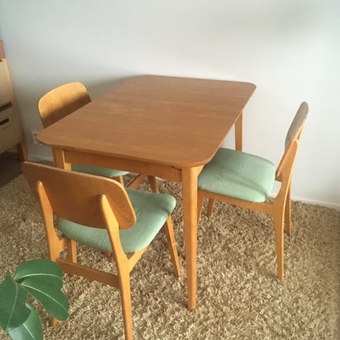 Tuolit ovat päällystetty, joten pestä tarvittaessa.