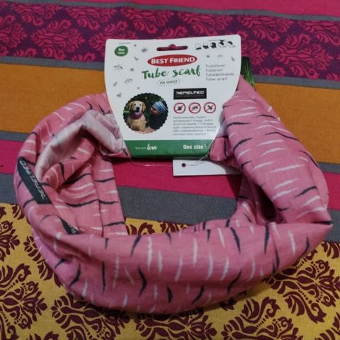 Myydään kerran kokeiltu tuubihuivi kokoa XS, oli pienelle kääpiövillakoiralle liian tiukka. Katso mitat kuvista.