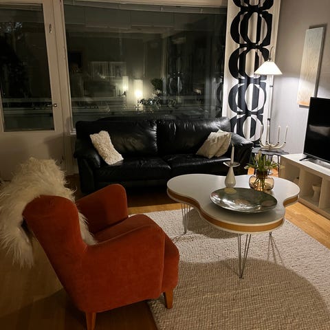Hyvä kuntoinen kolmen istuttava sohva ja nojatuoli. Pelkkä nouto.