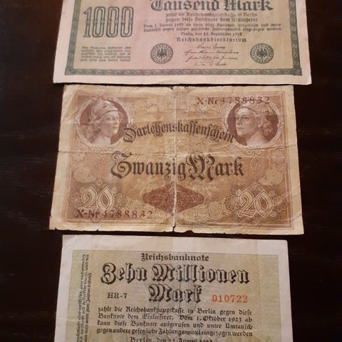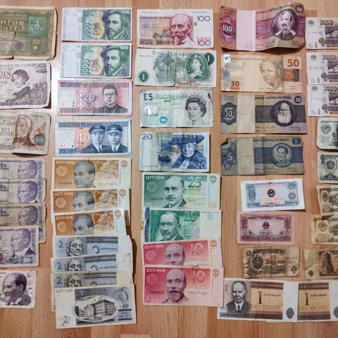 Ulkomaalaisia seteleitä eri maista ja eri arvoissa.
