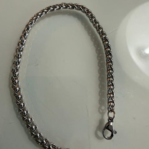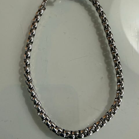 Myydään kaunis jämäkkä ranneketju. Todennäköisesti terästä. Pituus 19cm leveys 3mm. Ostajalle postikulut. Tulee normaalilla kirjepostilla. Kannattaa katsoa muutkin ilmoitukseni.