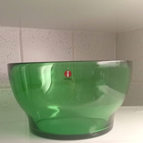 Kuvan mukainen hyväkuntoinen Vihreä VERNA TARJOILUKULHO. Desing Kerttu Nurminen. Mitat halkaisija 18,5 ja korkeus 10 cm. Tämä hintaan 15 euroa