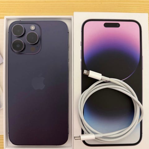 Apple iPhone 14 Pro Max -puhelin, jossa 128 GB tallennustila. Myydään uuden tieltä pois. Perus käytön jälkiä, enimmäkseen näytössä pieniä käytön naarmuja.