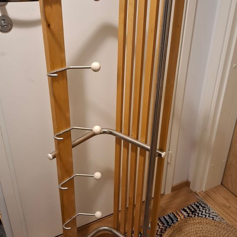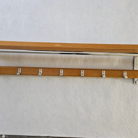 Koko metallinen funkkis hattuhylly myytävänä. Runko kaikin puolin ehjä. Patinaa pinnassa paikka paikoin.
