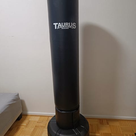 Karhu nyrkkeilysäkki, halkaisija 30 cm, pituus 90 cm, musta väri. Materiaali nahkaa.. Säkki painaa ja on suunniteltu nyrkkeilyharjoitteluun