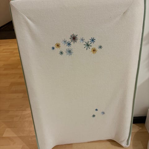 Äitiyspakkauksen (2024) mukana tullut patja, ollut käytössä noin 2kk ja muun ajan laatikossa.