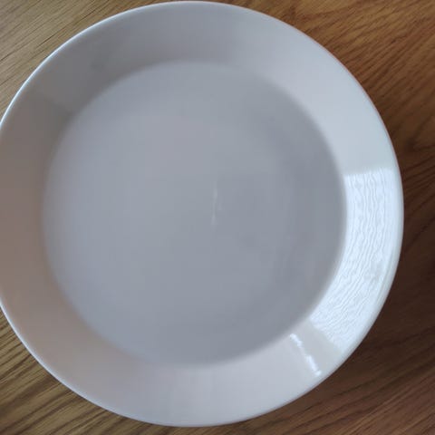 Kolme helmenharmaata Iittala Teema ruokalautasta 26 cm. Naarmuja pinnassa ja yhdestä lautasesta lohjennut kaksi palaa (kuvissa). Yleisilme muuten siisti.