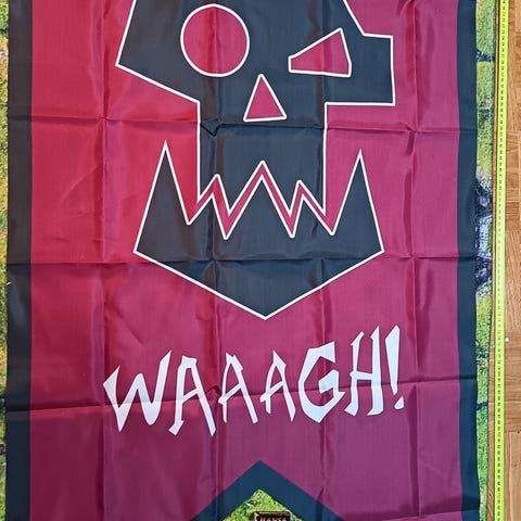 Warhammer 40k Astra Militarum Cadia, osasto VIII sotalippu. Koko: 150 cm x 90 cm (huom! Suuri eli alkupäistä lippua vastaava koko). Lippu on valmistettu kestävästä polyesteri- materiaalista, josta värit ei haalistu. Se sopii siis sisä- ja ulkotilojen koristeeksi. Huom! Siinä on myös ruostumattomat renkaat ripustamista varten. Tuote on siis uusi ja tulee pussissaan, aukaistu vain kuvausta varten.