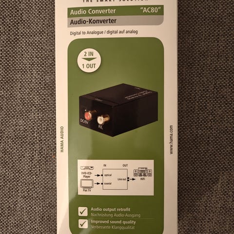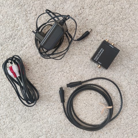 Mukaan virtalähde, jota ei uuden matkassa tule. Voin laittaa vielä optisen kaapelin matkaan, niin saat älytelevision liitettyä esim. vintage stereoihin.