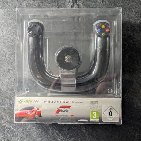 Todella siistissä kunnossa ja toimii kuten pitää. Erinomainen setti esim. Forza-/NFS-/Dirt-tyyppisiin ajopeleihin. Langaton yhteys konsoliin ja ratissa on kunnon ajotuntuma force feedbackin ansiosta (force feedback toimii, kun ratti on kytketty mukana tulevalla virtalähteellä verkkovirtaan).