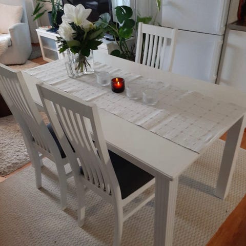 Ruokapöytä ja kaksi tuolia