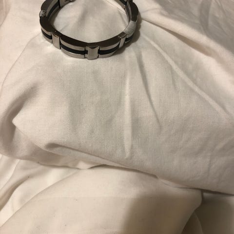 Laadukas ja tyylikäs ranskalainen rannekoru miehille. Käytetty pari kertaa, säilytetty suojataskussaan noin 15 vuotta. Ruostumatonta terästä (316L).