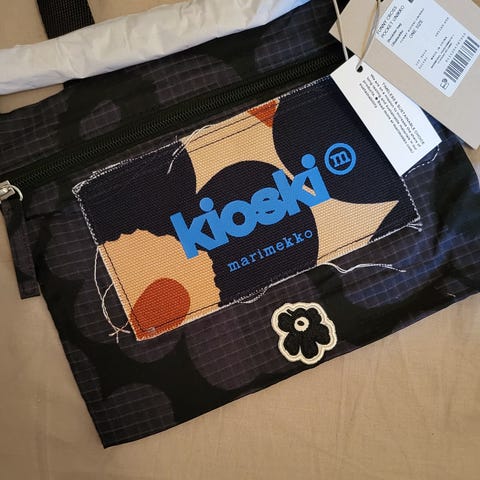 Myydään täysin uusi Marimekko Funny bottle bag - tasaraita. Sopii hyvin nimensä mukaisesti vesipullolle tai isomman puhelimen suojapussiksi.