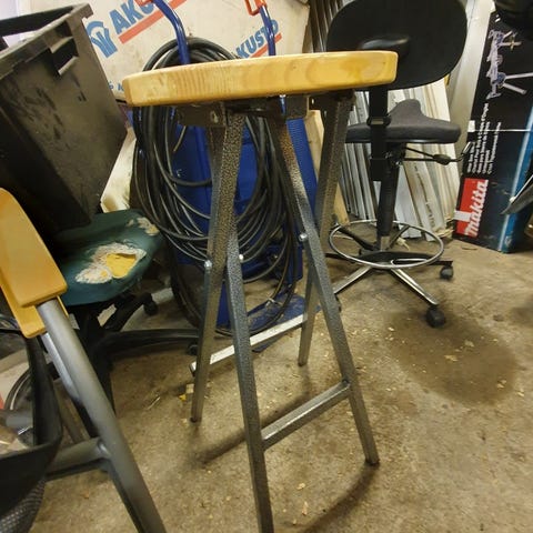 Vähän on käytön jälkee ja toinen hiukan keikuttaa "tyhjänä", korjaantuu varmaan uusilla huopatassuilla. Kokonaiskorkeus 105cm.