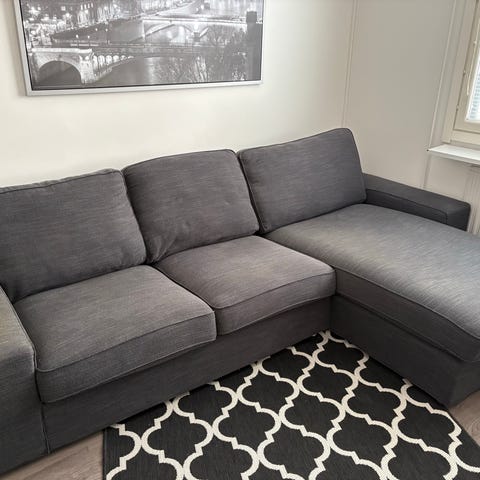 Kivik divaani kaupan. Päälliset kaipaa pesua, mutta halavalla lähtee. Kunto muutoin hyvä. Väri harmaa. Ei eläimiä taloudessa. Hintaan 60 euroa.