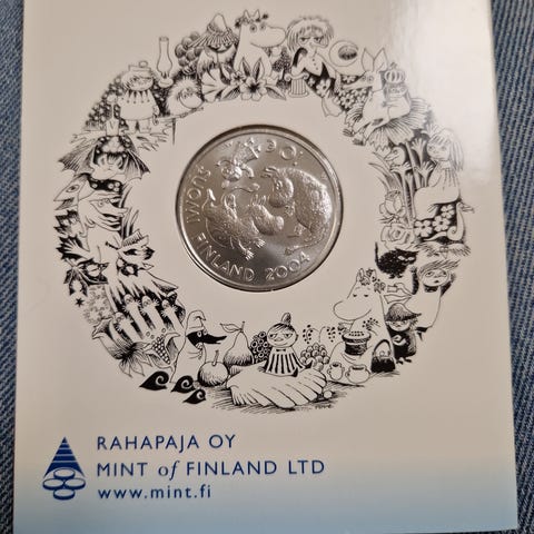 Tove Jansson ja Lastenkulttuuri hopeinen juhlaraha proof -kotelossaan.