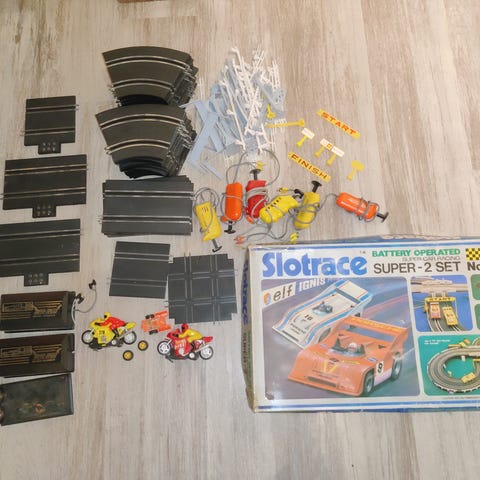Mukana autot ja radan osat.