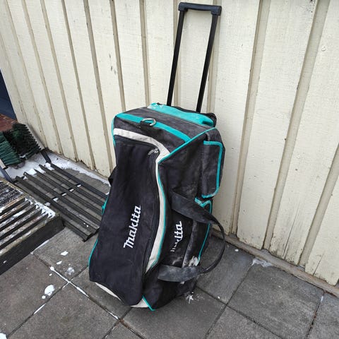 Uusi ja käyttämätön Makita työkalusalkku, salkku on akkuporakoneelle, ja sen voi liittää muihin Makitan salkkuihin klipseillä.