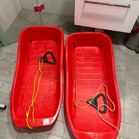 Pulkka metalli kiskoilla. 2 kpl voidaan tuoda.