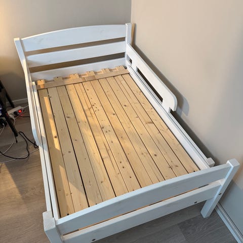IKEA Jatkettava sänky on suunniteltu lapsille ja se voidaan säätää eri pituuksiin kasvun mukaan. Sänky on valmistettu valkoisesta materiaalista ja soveltuu lasten huoneeseen.kauppaan kuuluu myös siistit patja ja petauspatja.