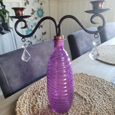 Kynttilänjalka kahdelle kynttilälle kullanvärinen kirkkaat prismat kimaltelee korkeus 25 cm leveys 25 cm eheä hyväkuntoinen hinta 34 € kysy lisää tule katsomaan kulkeutuu sovittaessa lähialueelle +postitus