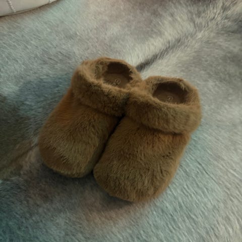 Crocs Tohvelit koko 38-39 (jalan pituus 25 cm kokotaulukon mukaan). Itsellä jalan pituus on 24,5 cm ja sopivat jalkaan melko naftisti muhkean sisäkarvan vuoksi. Ostin itselle kokoa suuremmat eli sanoisin paremminkin koon sopivan 37-38 jalkaan.