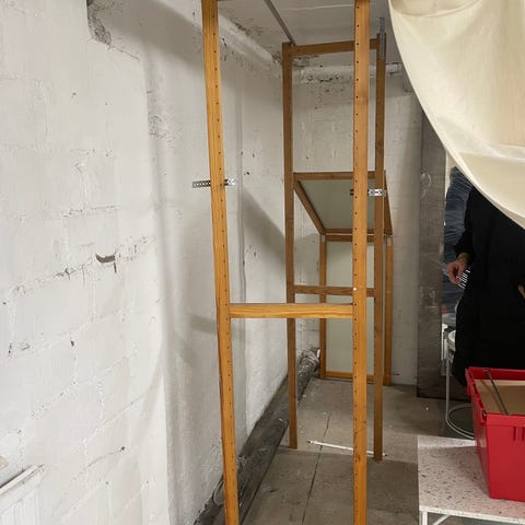 Myydään kuvan mukaiset Lundian hyllytasot, laatikot ja tikat yhteishintaan 50€.
