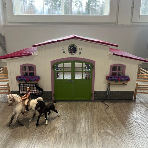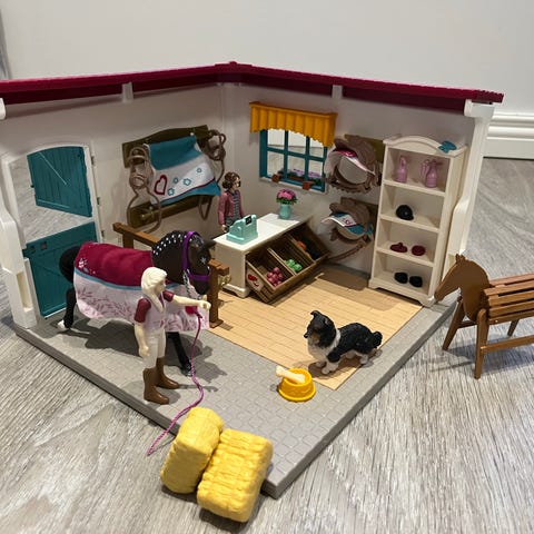 Myydään schleich kahvilaa. Sisältää kaikki kuvassa näkyvät tavarat.