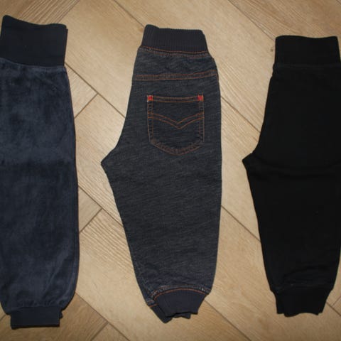 Uutena ostetut kaksi housupakettia. Muuten kaikki hyväkuntoisia, mutta yksissä housuissa hyvin pieni reikä lahkeessa, näkyy toisessa kuvassa.