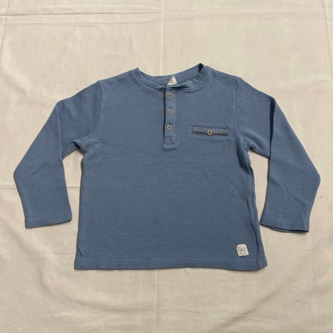 Pitkähihainen paita, koko 104, sininen. Materiaalina puuvilla. Sopii pojille. Paidassa on oranssi helikopterikuvio etupuolella.