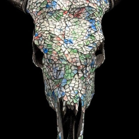 Ei lähtöhintaa - upea lehmän pääkallo lasimosaiikkikoristeella -kulta- Kall