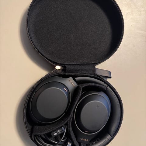 Hyvässä kunnossa olevat ja siistit vastamelukuulokkeet. Sony WH-1000XM5 -Bluetooth-vastamelukuulokkeet, sininen.