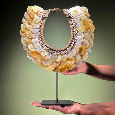 Koriste-esine - SN7 - Decorative shell necklace on a custom stand -