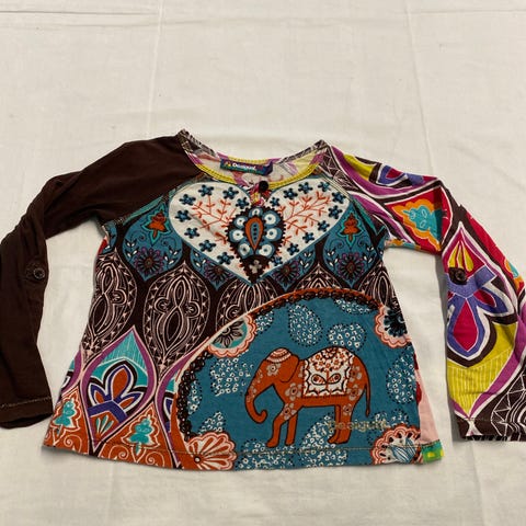 Maatila aiheinen lasten paita, koko 110 cm. Valmistettu puuvillamateriaalista. Paita on väriltään kirjava ja soveltuu arkipukeutumiseen. Pesunukkaa
