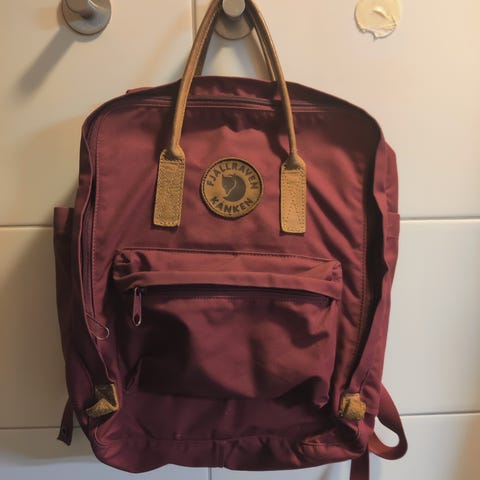 Sisäpuolella kaksi vetoketjutaskua ja kolme avotaskua. Selkäpuolella vetoketjutasku. Uutena 249€.