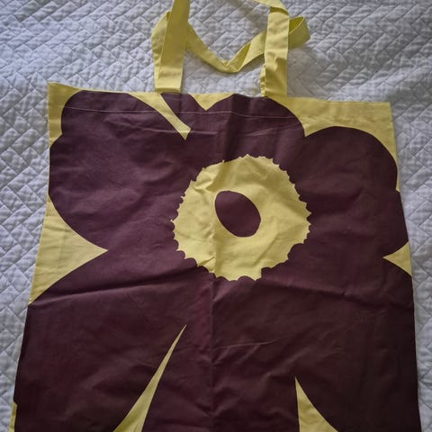 Myyntiin uusi ja käyttämätön Marimekon pikku unikko kangaskassi.