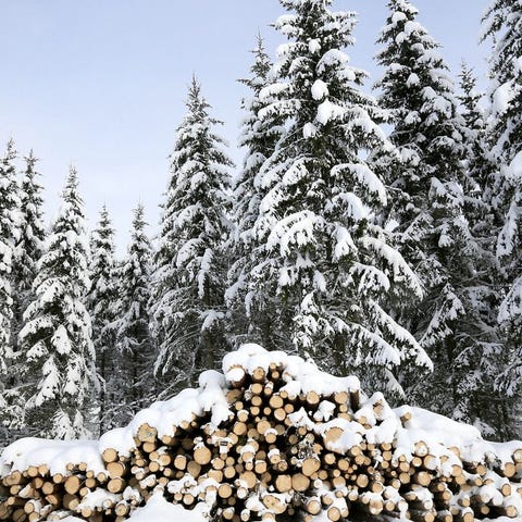 Alkutalvesta kaadettua puuta. Suurin osa koivua. Seassa myös kuusta ja mäntyä.