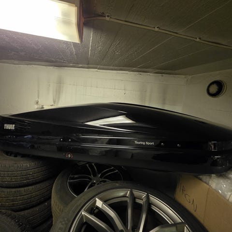 Thule Weekender kattoboksi. Leveä boksi nielee uskomattoman määrän kasseja. Loistovaruste vaikka suurperheen auton katolle tai koiratalouteen jossa Musti vie tavaratilan.