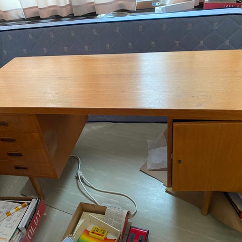 Hieno 40-luvun funkkis työpöytä myytävänä. Yleiskunto ikäisekseen hyvä. Pöydän etureunassa kolhua ja kyljessä naarmu. Kansi siisti. Vetolaatikot liukuvat sujuvasti. Oveen ja keskilaatikkoon löytyy avain ja lukot toimivat. Ei hajuja.