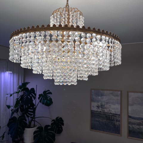 Upea Turun kristallikruunu myytävänä. Kaikki osat tallessa ja valaisin on toimiva. Pistokkeella.