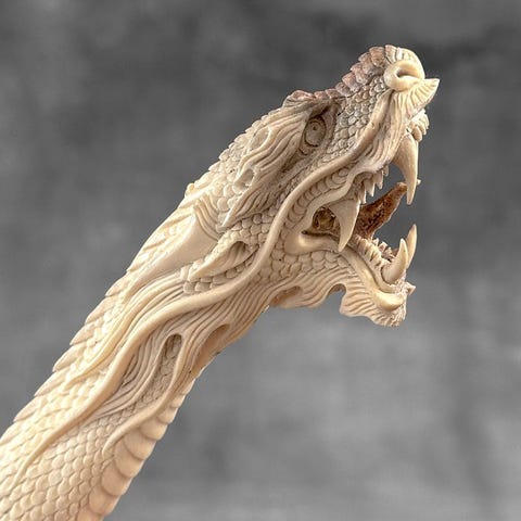 Kaiverrus, A Native American chief with Animal Totem carving from deer antler